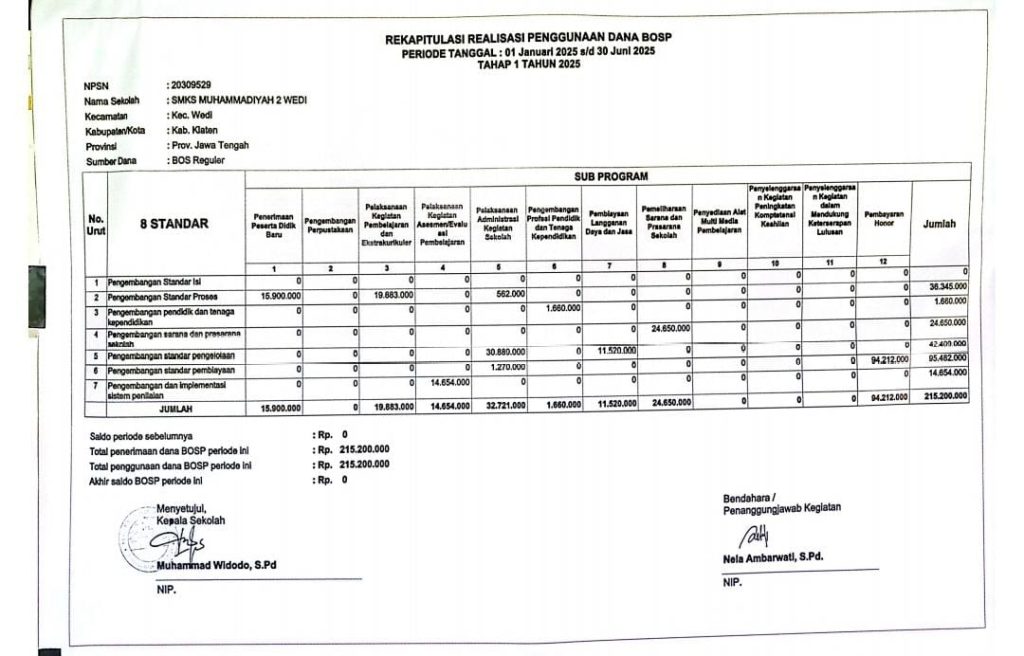 Laporan Dana BOS (1 Januari 2025 s.d 30 Juni 2025